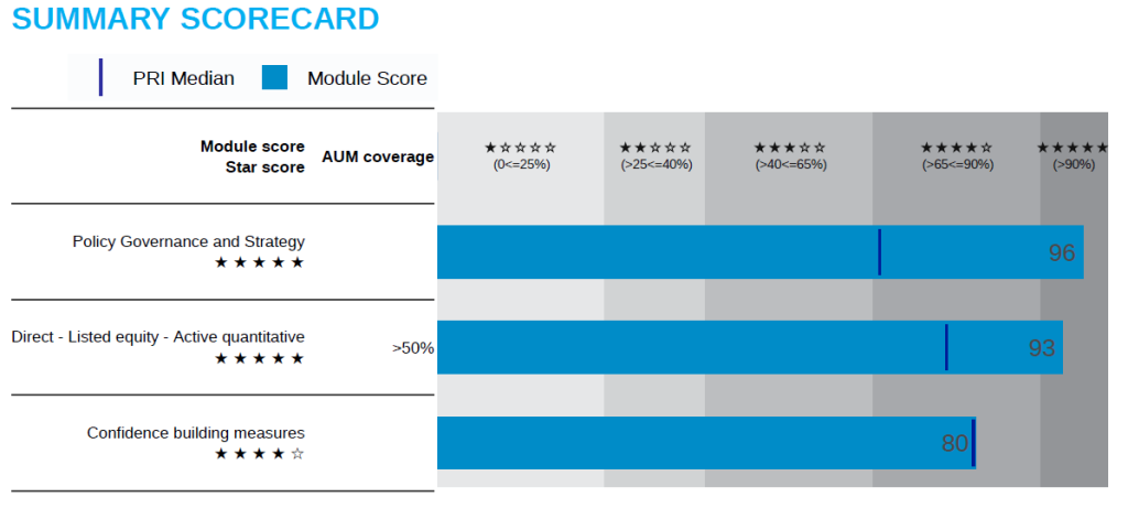 Osmosis Investment Management UK Limited (“Osmosis”) has recently been awarded strong scores in all sections of the UN-backed Principles for Responsible Investment (PRI) 2025 Assessment Report.* Of particular note, the highest score (a 5 star rating) was achieved in the Policy, Governance & Strategy and Direct – Listed Equity – Active Quantitative categories – placing Osmosis well above the investment industry median, represented by the blue lines within the bars found in the scorecard below. In addition, we received a 4 star rating for Confidence Building measures.